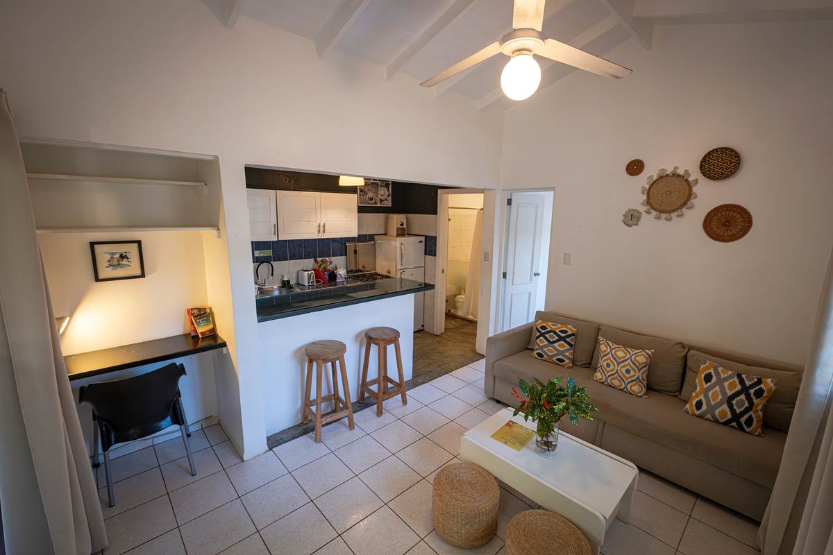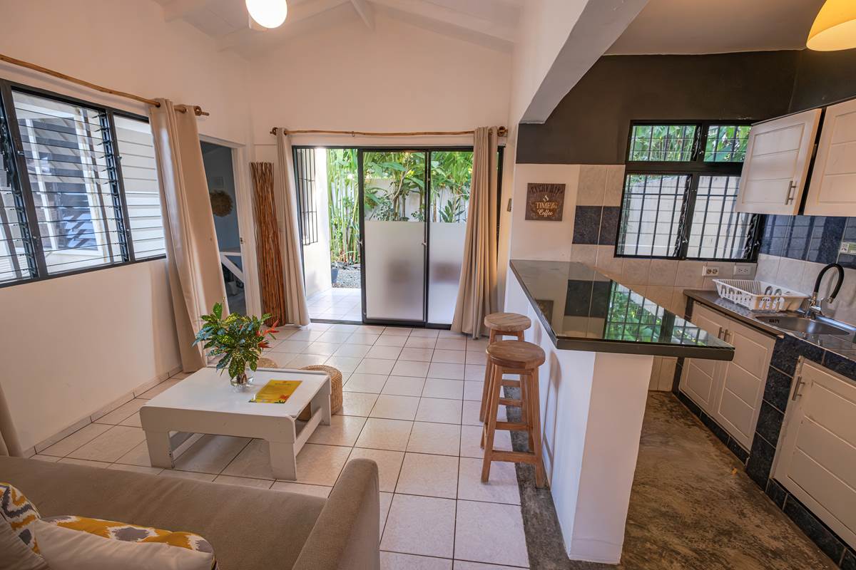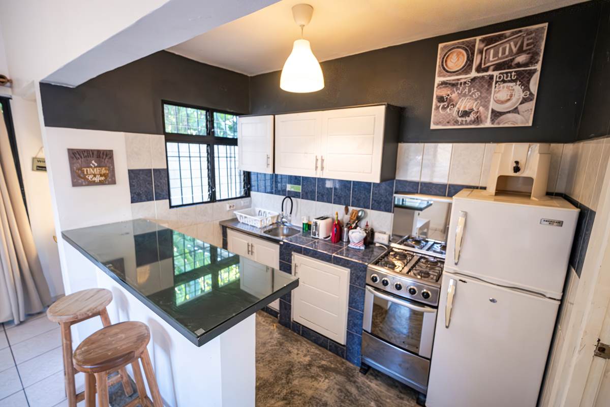 1 open kitchen with dining area (refrigerator, kitchen utensils, hotplates)